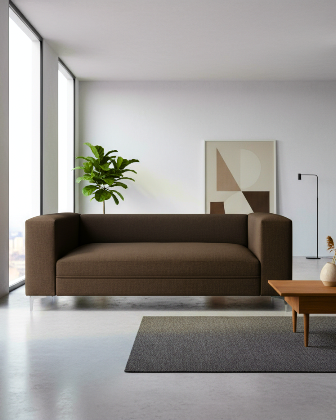 Un diseño elegante y contemporáneo que destaca por sus líneas rectas y brazos de 23 cm de ancho, aportando un estilo moderno y minimalista. Tapizado en lino Café de la Colección Milano, combina suavidad y resistencia. Sus patas metálicas de 15cm espejadas añaden un toque sofisticado y facilitan la limpieza. Con 205 cm de largo, es ideal para quienes buscan confort y diseño en un solo sofá.