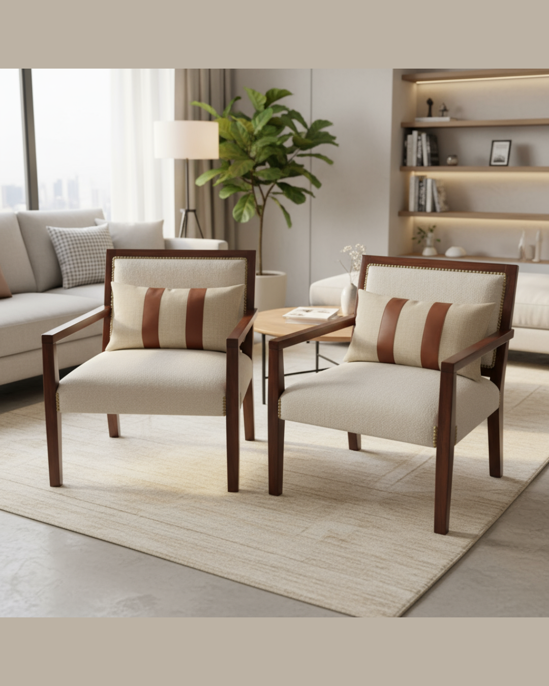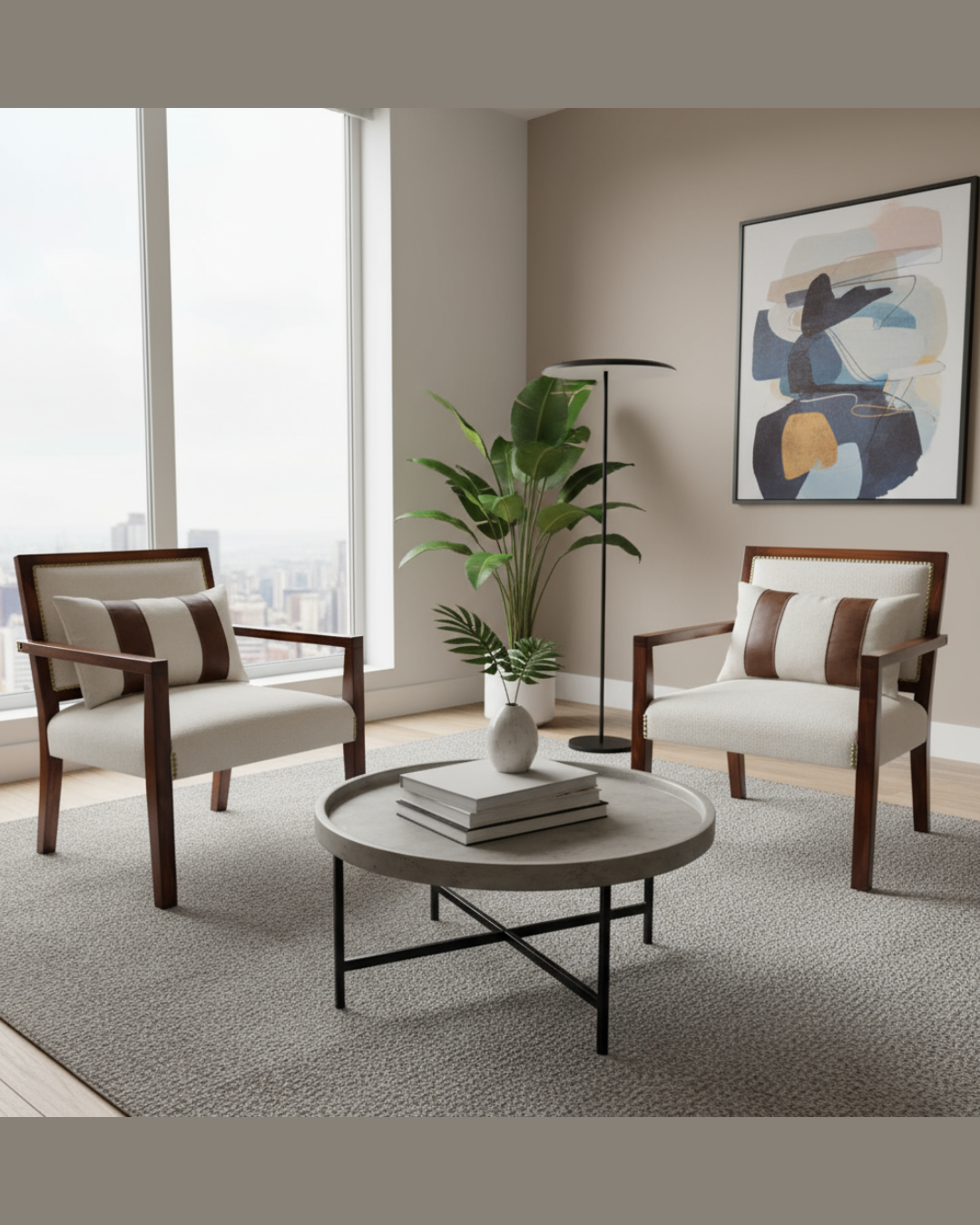 Elegante, moderno y fabricado 100% por Sofá Prime. Nuestro Sitial Estocolmo combina estructura de madera con tapiz en lino crudo y un cojín decorativo con detalles en cuero café, ideal para dar un toque sofisticado a cualquier espacio.