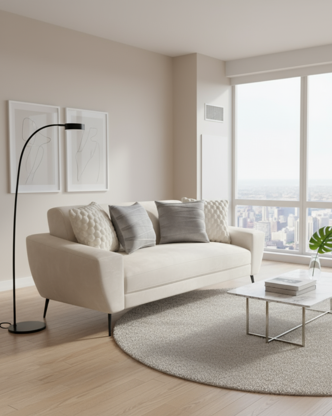 Diseño contemporáneo con un toque de lujo, ideal para realzar cualquier sala de estar con su tono crudo y textura aterciopelada. Tapizado en felpa tipo terciopelo de alta calidad, aporta elegancia, suavidad al tacto y un estilo acogedor que se adapta a distintos ambientes.