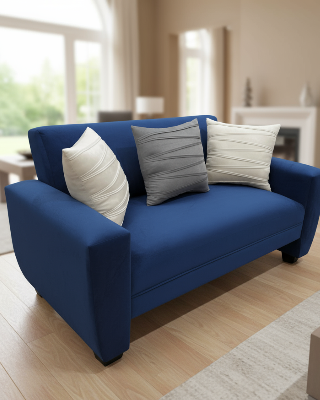 Sofá de diseño compacto tapizado en Felpa ( Terciopelo) Azul .