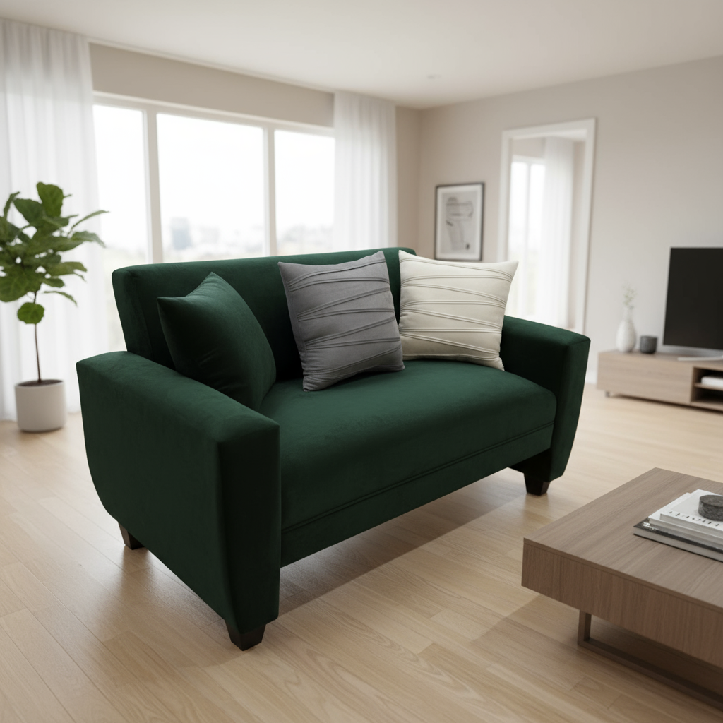Sofá de diseño compacto tapizado en Felpa ( Terciopelo) Verde oscuro .