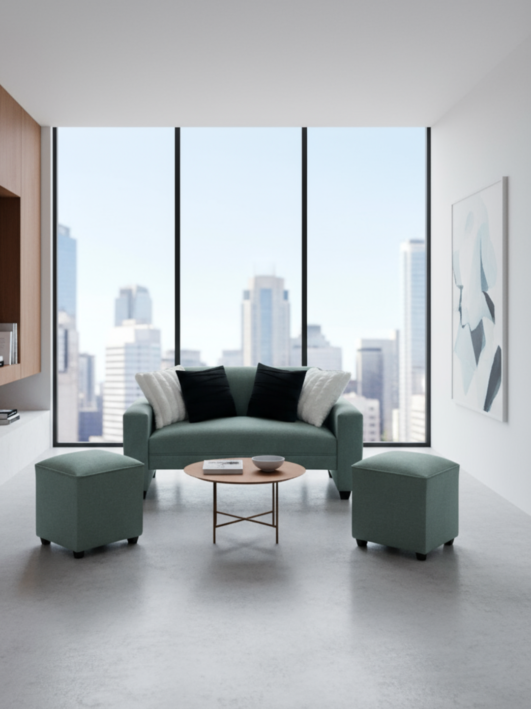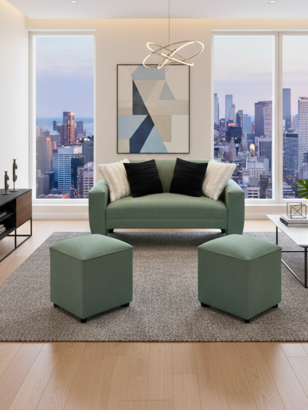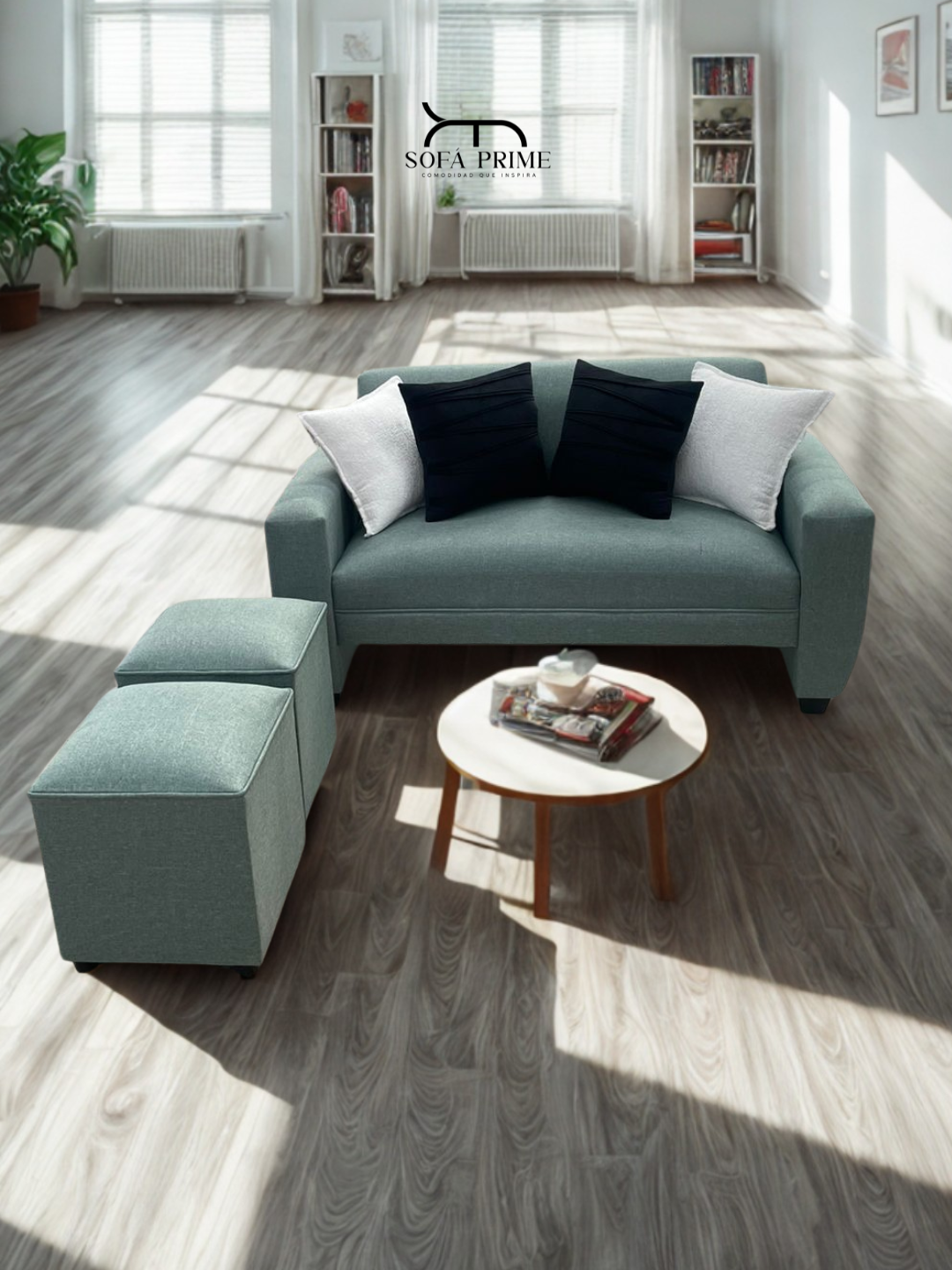 Sofá Sydney 1.50+ 2 puff 40cm Lino verde menta