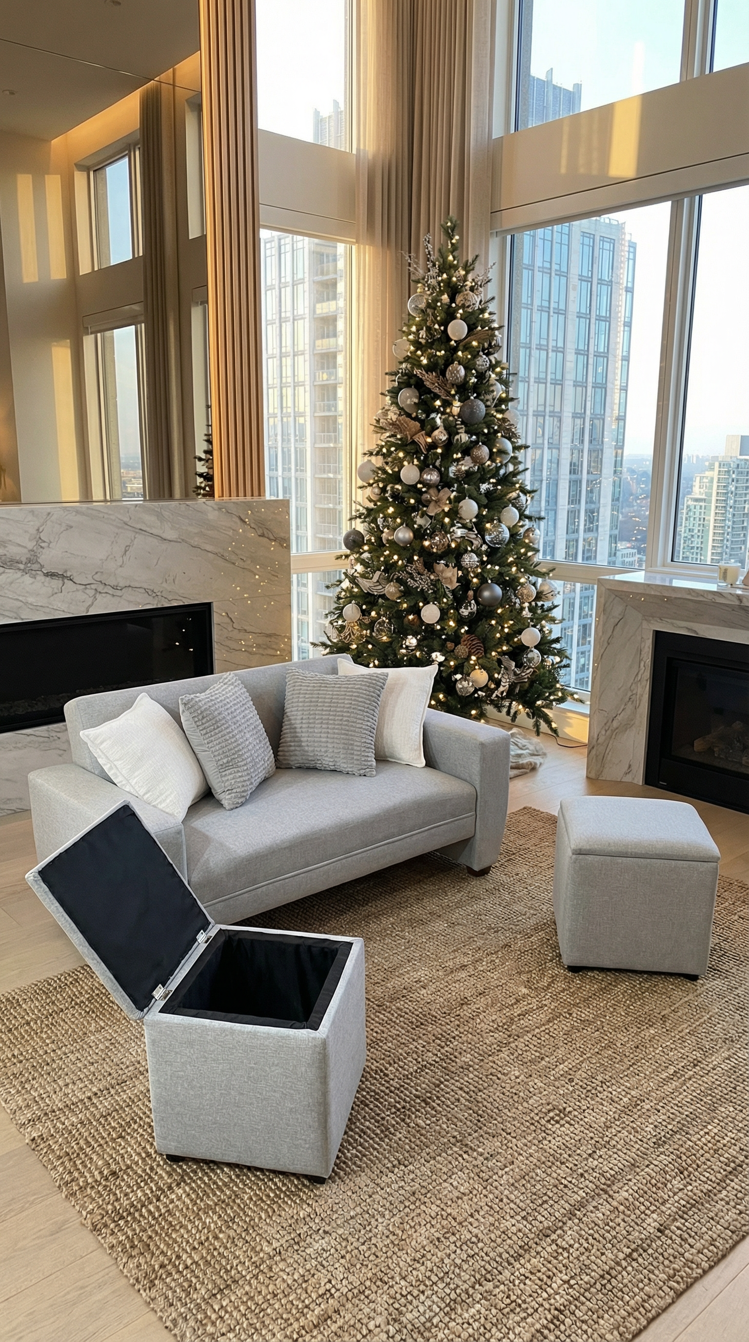 Sus dos puff con baúl incorporado son ideales para organizar tu hogar, guardando lo que necesites de forma discreta y manteniendo todo en orden. Además, pueden usarse como apoyo extra para tus visitas o como descansa píes.