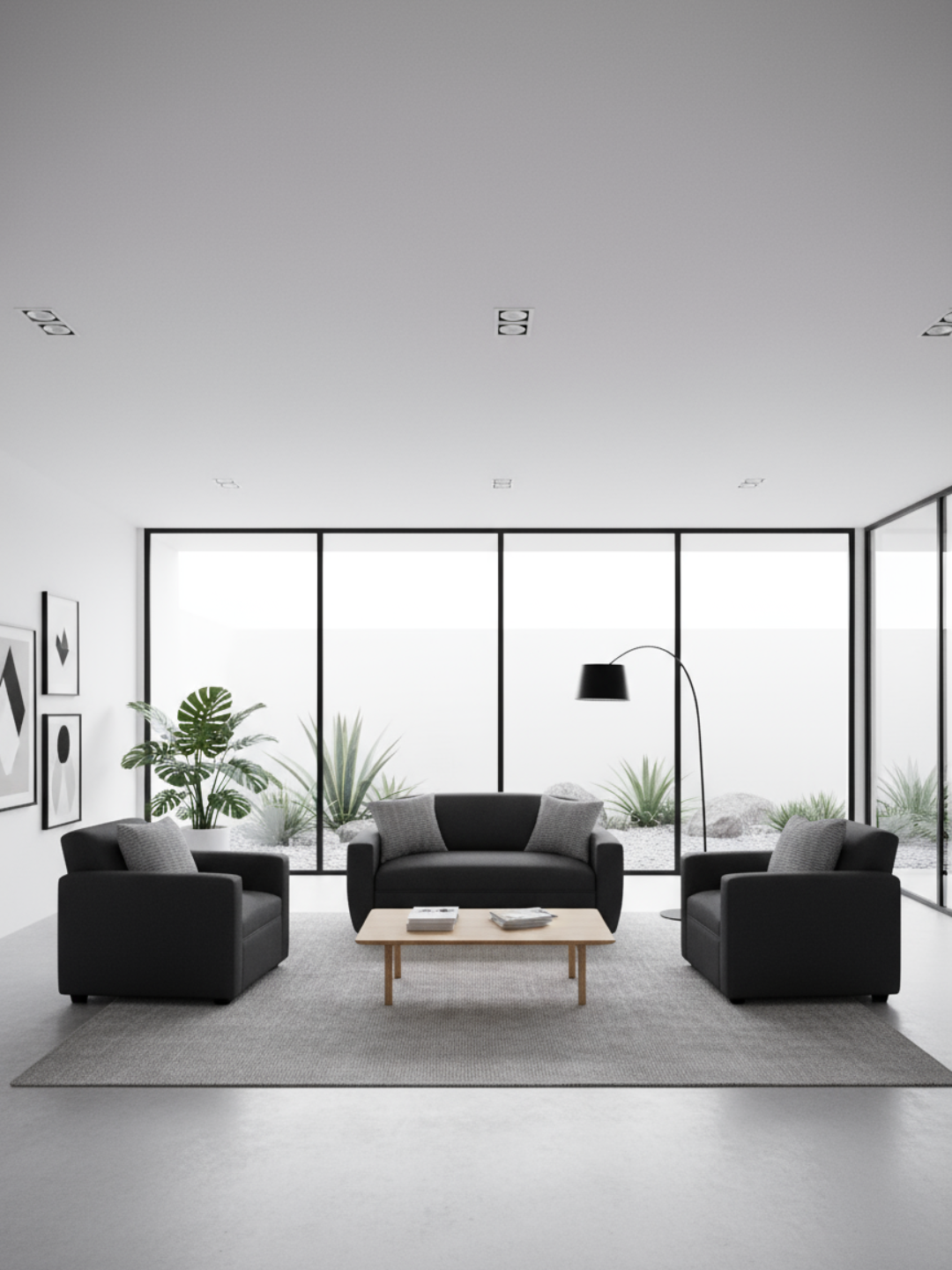Acompañado de dos sofás de un cuerpo.
