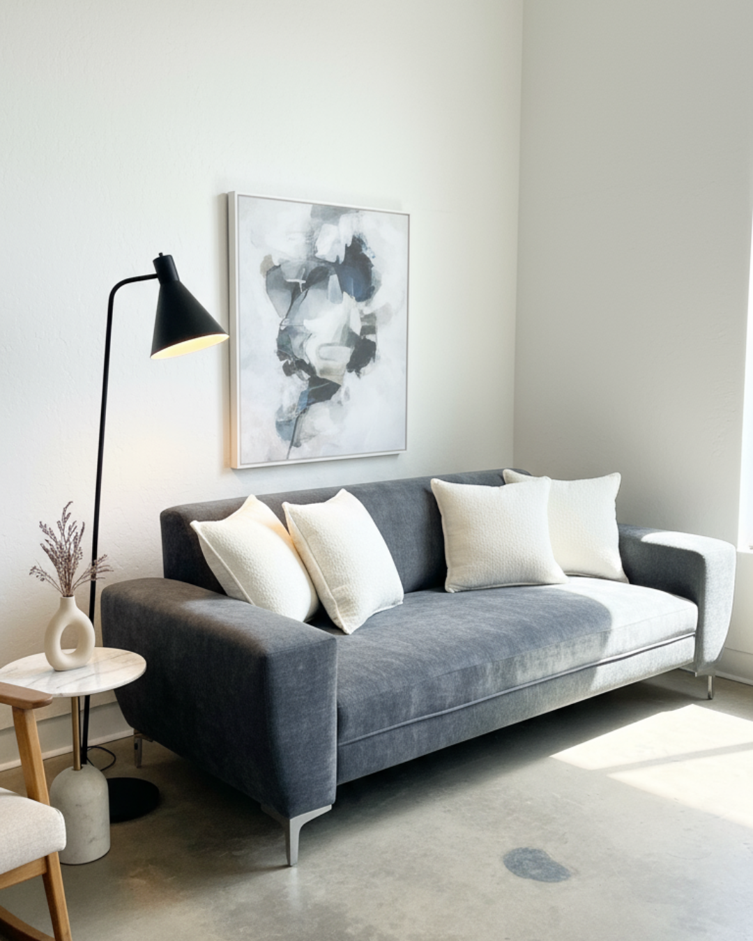 Estructura firme con brazos de 20 cm y patas espejadas de 15 cm, combinando confort y distinción en cada detalle.
